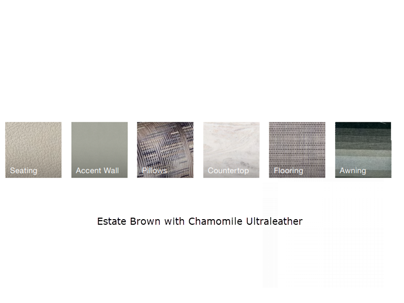 Sleeps 5 Length 33 ft 3 in Ext Width 8 ft 6 in Ext Height 9 ft 7 in Int Height 6 ft 7 in Interior Color Comfort White; Earl Grey, Cafe Latte. Estate Brown; Earl Grey, Chamomile Hitch Weight 1150 lbs GVWR 10000 lbs Dry Weight 8425 lbs Cargo Capacity 1575 lbs Fresh Water Capacity 53 gals Grey Water Capacity 34 gals Black Water Capacity 39 gals Tire Size LT225/75R16 Available Beds Queen Refrigerator Type 12 Volt Refrigerator Size 9.7 cu ft Convection Cooking Yes Cooktop Burners 3 Number of Awnings 1 LP Tank Capacity 30 lbs Water Heater Type Electric/LP AC BTU 15000 btu TV Info LR 43" Smart TV on Lift, BR 24" 12V DC Smart TV Awning Info Powered Zipdee with Sunbrella Fabric and LED Dimmable LIght Axle Count 2 Number of LP Tanks 2 Shower Type Radius Electrical Service 50 amp Similar Floorplans