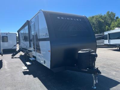 The lightweight Model I travel trailer by Brinkley is the perfect choice for those looking for an easy tow and at-home comforts! There is a drop-frame chassis, high-performance Road Armor suspension equalizer system, and Demco EZ Latch trailer coupler that automatically latches when dropped onto a hitch ball without the need of a safety pin. Additional exterior features include square Euro frameless windows, automotive-grade paint, full-width LED strip lighting in the pass-thru, and a pet & property security campside tie-down to keep your gear and furry friends safe. Inside, you'll be wowed by Brinkley's CraftSense wood trim construction, residential solid surface kitchen countertops, dimmable bedroom lights, and marine-grade neon LED shower lighting to name a few stand-out features!