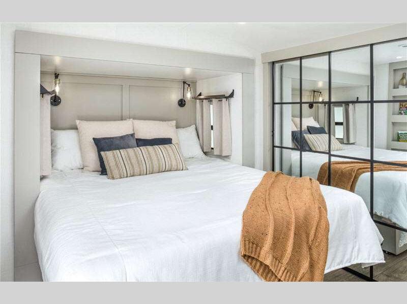 - Queen Bed w/ Residential 9" Memory Foam Mattress (60"x80") & Nightstands (Standard on 2670, 2680, 2700, 2900 & 3110, Optional on 3100, 3200, 3300, 3400, & 3515, 3610)