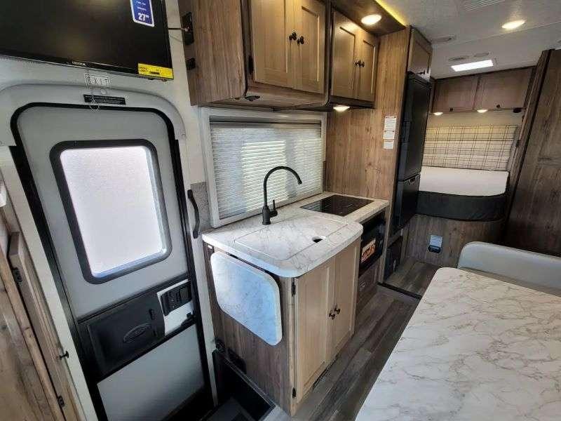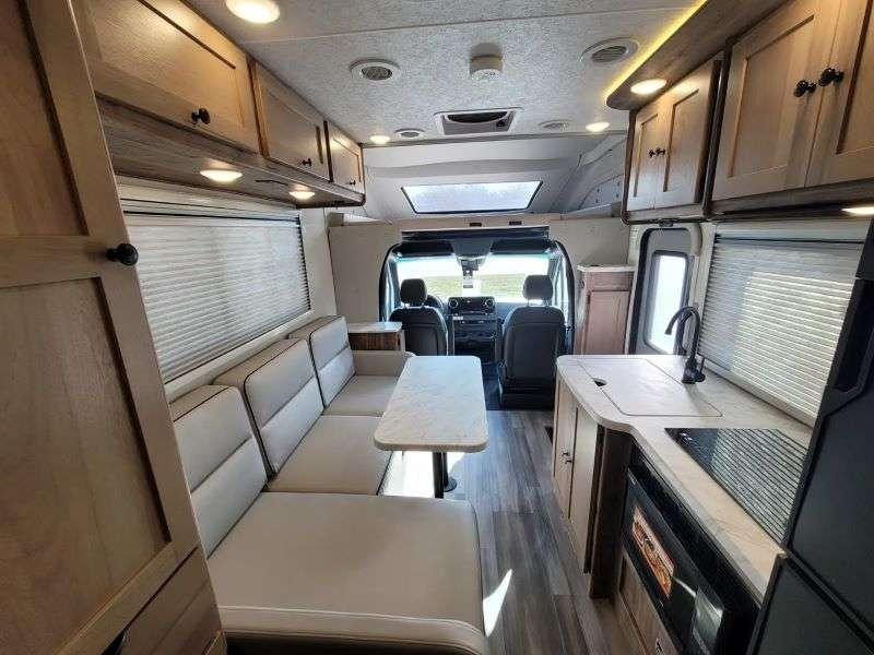 Sleeps 5 Length 24 ft 11 in Ext Width 7 ft 8 in Ext Height 10 ft 9 in GVWR 11030 lbs Fresh Water Capacity 29 gals Grey Water Capacity 32 gals Black Water Capacity 32 gals Generator 3.6kw Propane Fuel Type Diesel Chassis Mercedes-Benz Sprinter Fuel Capacity 26 gals Wheelbase 170 in Number Of Bunks 1 Available Beds Full Refrigerator Size 6.2 cu ft Cooktop Burners 2 Shower Size 24 x 32 Number of Awnings 1 Axle Weight Front 4410 lbs Axle Weight Rear 7720 lbs LP Tank Capacity 68 lbs Water Heater Type On Demand AC BTU 13500 btu TV Info LR TV, Ext. TV Awning Info 14' Power Gross Combined Weight 15250 lbs Shower Type Standard Similar Floorplans