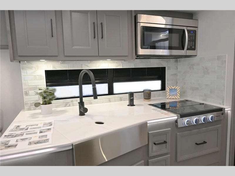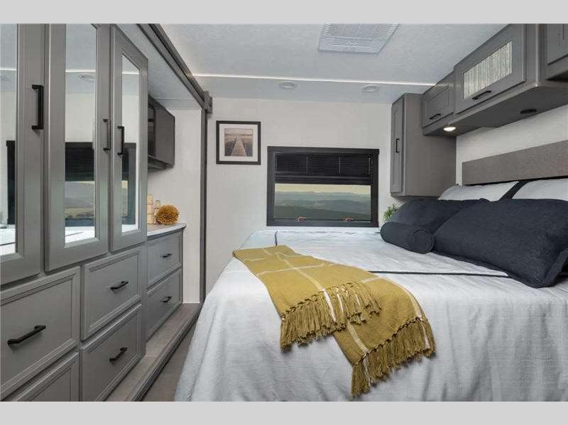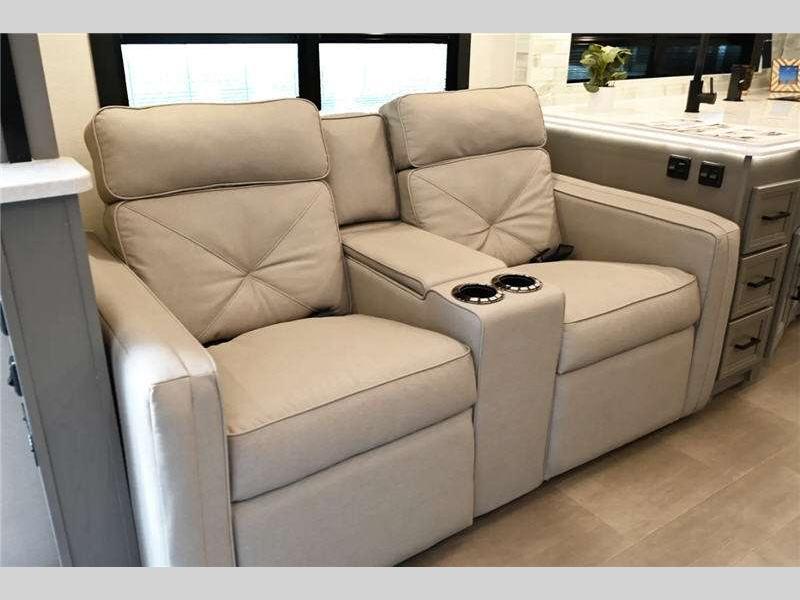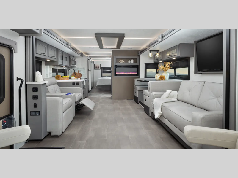Their interiors are designed for maximum comfort with everything you could need to recharge. Some of these features include stainless steel appliances, a king bed, and an electric fireplace on some models. Enjoy a comfortable ride to each destination with the reclining/swivel pilot seats, and the 10" touchscreen radio with Bluetooth Apple CarPlay and Android Auto link allow you to play your favorite tunes too!