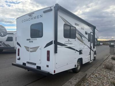 With any Freelander SS Class C gas motorhome by Coachmen, you will find a quality constructed coach for all your journeys. There is AlphaPly TPO seamless one-piece roof material and a max-length power awning with an LED light strip so you can enjoy evenings outdoors. You will also find a molded fiberglass front cap, a rotocast rear warehouse storage compartment, and an upgraded exterior safety grab handle. The mandatory SS Package includes a tankless water heater, running boards, and a towing hitch for your hauling needs. Head inside to enjoy the premium one-piece Thermofoil countertops and vinyl flooring, brushed nickle hardware, pleated night shades, and many more comforts.