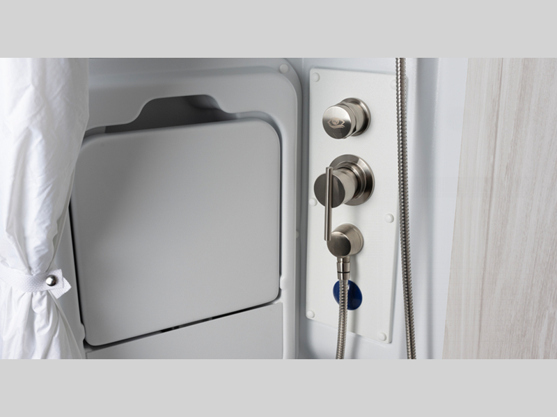 - Heated holding tanks (12V pads) with LED-lit holding tank valves
