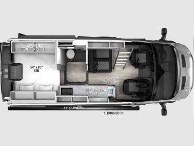 Sleeps 2 Length 20 ft 11 in Ext Width 6 ft 9 in Ext Height 10 ft 2 in Int Height 6 ft 4 in Exterior Color Carbonized Gray, Avalanche Gray GVWR 9950 lbs Fresh Water Capacity 34 gals Grey Water Capacity 23 gals Tire Size 255/70R16 120/117S Furnace BTU 6800 btu Fuel Type Gas Engine 3.5L V6 GTDi Chassis Ford W2XC T350 AWD Horsepower 310 hp Fuel Capacity 25 gals Wheelbase 148 in Available Beds Double Torque 400 ft-lb Refrigerator Type 12V Refrigerator Size 3.2 cu ft Number of Awnings 1 Axle Weight Front 4630 lbs Axle Weight Rear 6300 lbs Water Heater Capacity 2.5 gal AC BTU 20000 btu TV Info 2 Awning Info 11'6" Gross Combined Weight 12600 lbs Shower Type Wet/Bath Shower Electrical Service 30 amp