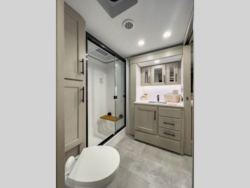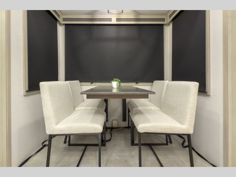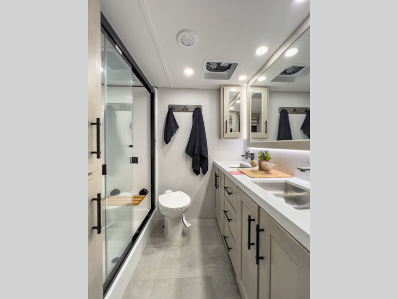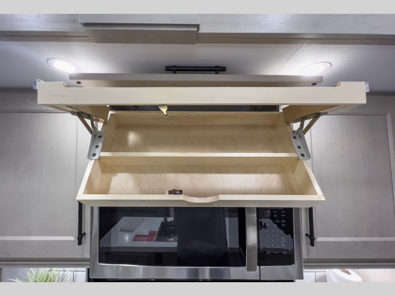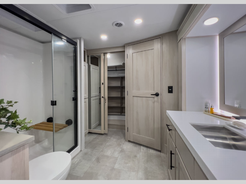 Each is built on a 101" wide body drop-frame super chassis, and includes the MORryde pin box system that utilizes a unique rubber shear spring to positively deal with rough towing and road shock. Some standard features that stand out include the chef-inspired professional grade stainless steel cooktop and Smart sink with a removeable cutting board, produce strainer and glass rinser, and the on-demand water heater with a whole house water filtration system. There is also an all-in-one enclosed and heated utility center to enjoy four seasons of camping, plus many more comforts.