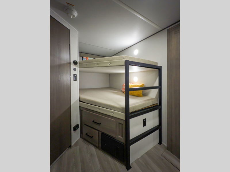 Sleeps 8 Slides 1 Length 31 ft 9 in Ext Width 8 ft Ext Height 11 ft Int Height 6 ft 6 in Hitch Weight 714 lbs GVWR 9724 lbs Dry Weight 6820 lbs Fresh Water Capacity 56 gals Grey Water Capacity 78 gals Black Water Capacity 39 gals Tire Size ST205/75R15LRD Furnace BTU 35000 btu Number Of Bunks 2 Available Beds Queen Refrigerator Type 12V Cooktop Burners 3 Shower Size 24" x 32" Number of Awnings 1 LP Tank Capacity 20 lbs Water Heater Capacity 6 gal Water Heater Type Gas/Electric AC BTU 13500 btu Awning Info 19' Power w/LED Light Axle Count 2 Number of LP Tanks 2 Shower Type Walk-In Shower Similar Floorplans