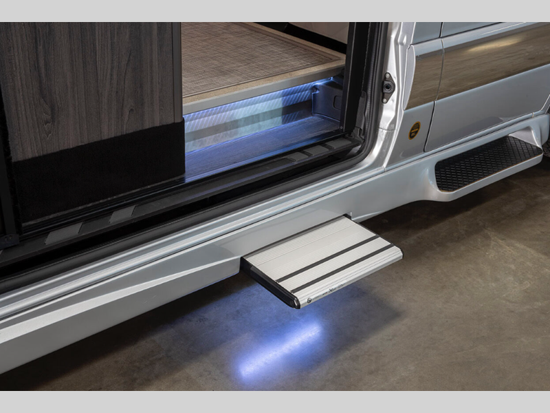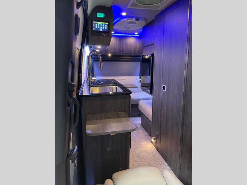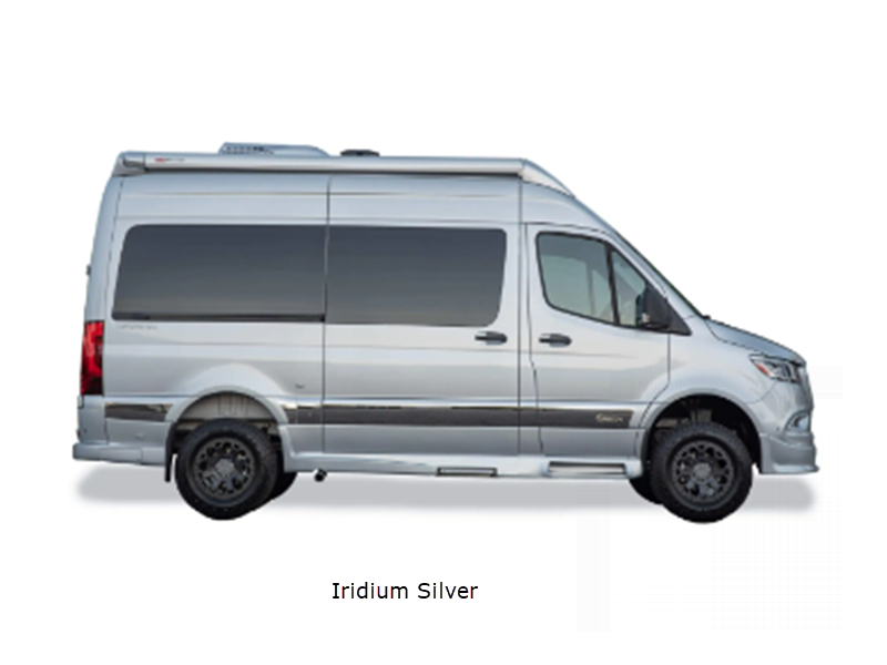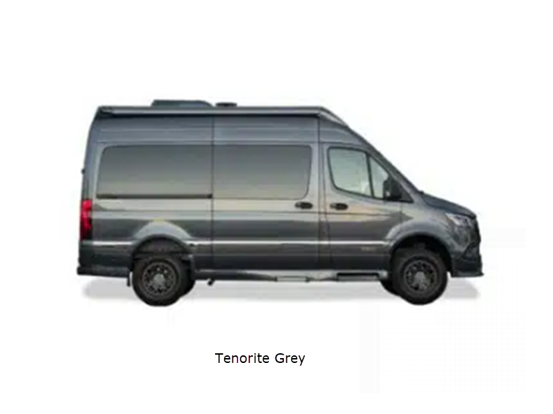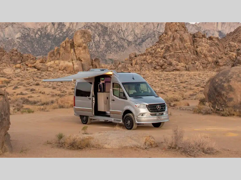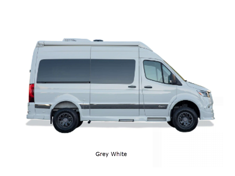 Sleeps 2 Length 19 ft 6 in Ext Width 6 ft 8 in Ext Height 10 ft Int Height 6 ft 1 in Exterior Color Tenorite Grey, Iridium Silver, Grey White Hitch Weight 5000 lbs Fresh Water Capacity 16 gals Grey Water Capacity 26 gals Black Water Capacity 13 gals Fuel Type Diesel Engine Four Cylinder High Output Chassis Mercedes-Benz Sprinter 2500 Horsepower 211 hp Wheelbase 144 in Torque 332 ft-lb Refrigerator Type Refrigerator/Freezer Convection Cooking Yes Cooktop Burners 2 Number of Awnings 1 Water Heater Type Tankless AC BTU 15000 btu TV Info Coach 24" LED TV with Apple TV Awning Info Power with LED Lights Shower Type Wet/Bath Shower Electrical Service 30 amp Similar Floorplans