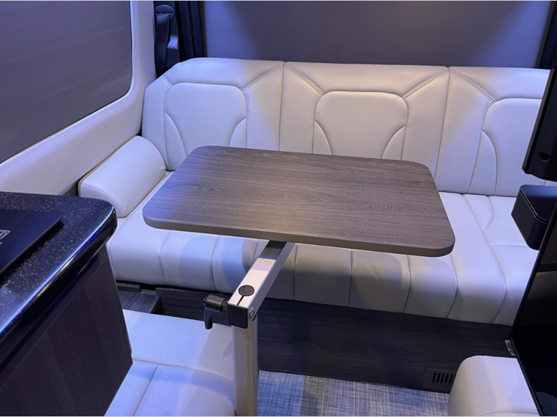 The Turismo-ion delivers unparalleled standard equipment featuring a Mercedes-Benz Sprinter 2500 144" with a 4-cylinder diesel high-output engine and 9-speed transmission. The lithium-ion battery system provides a total of 1,260 amp hours and 16,128 watt hours allowing the A/C to run for up to 12 hours on battery power alone. Some of the interior comforts you'll enjoy are the Ultraleather seating surfaces, solid surface countertops with a farmhouse style sink, a dual induction cooktop, and the list goes on!