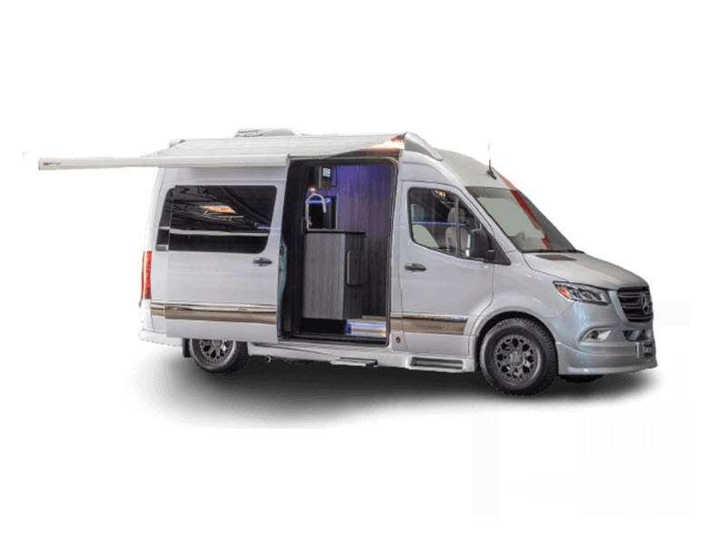 Sleeps 2 Length 19 ft 6 in Ext Width 6 ft 8 in Ext Height 10 ft 2 in Int Height 6 ft 1 in Exterior Color Tenorite Grey, Iridium Silver, Grey White Hitch Weight 5000 lbs Fresh Water Capacity 16 gals Grey Water Capacity 26 gals Black Water Capacity 13 gals Fuel Type Diesel Engine Four Cylinder High Output Chassis Mercedes-Benz Sprinter 2500 Horsepower 211 hp Wheelbase 144 in Torque 332 ft-lb Refrigerator Type Refrigerator/Freezer Convection Cooking Yes Cooktop Burners 2 Number of Awnings 1 Water Heater Type Tankless AC BTU 15000 btu TV Info Coach 24" LED TV with Apple TV Awning Info Power with LED Lights Shower Type Wet/Bath Shower Electrical Service 30 amp -