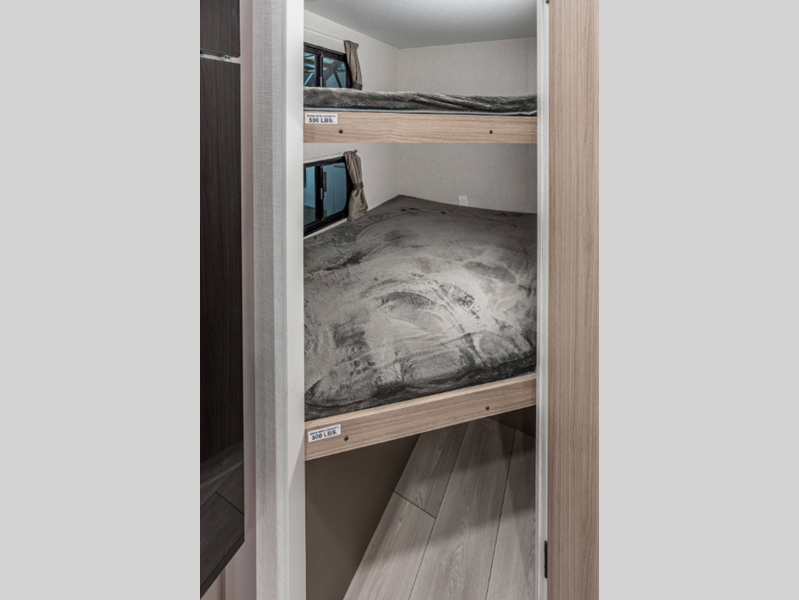 Sleeps 7 Slides 1 Length 22 ft 10 in Ext Width 7 ft 6 in Ext Height 9 ft 4 in Int Height 6 ft 6 in Interior Color Nomad, Mushroom Grey Hitch Weight 530 lbs GVWR 4800 lbs Dry Weight 3810 lbs Cargo Capacity 990 lbs Fresh Water Capacity 20 gals Grey Water Capacity 26 gals Black Water Capacity 26 gals Tire Size 15" Furnace BTU 20000 btu Number Of Bunks 2 Available Beds Queen Refrigerator Type 12V Refrigerator Size 8 cu ft Cooktop Burners 2 Number of Awnings 1 Axle Weight 3280 lbs LP Tank Capacity 20 lbs Water Heater Type Tankless AC BTU 13500 btu Awning Info 15' Power Axle Count 1 Number of LP Tanks 1 Shower Type Neo-Angled Similar Floorplans