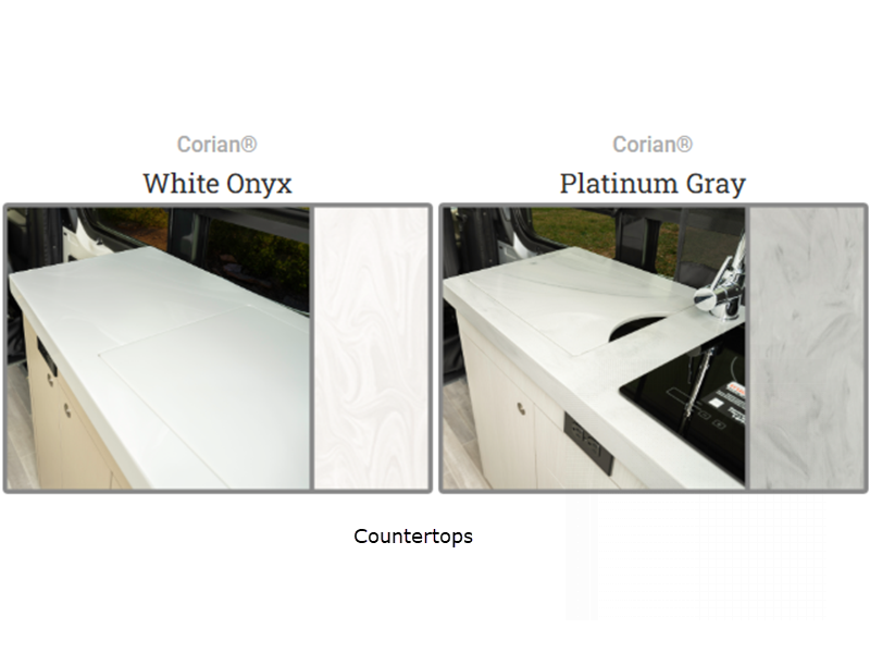 Sleeps 2 Length 19 ft 8 in Ext Width 8 ft 2 in Ext Height 10 ft Int Height 6 ft 6 in Interior Color Cashmere, Flint Exterior Color Ingot Silver Hitch Weight 3100 lbs GVWR 9500 lbs Fresh Water Capacity 25 gals Grey Water Capacity 15 gals Black Water Capacity 11 gals Furnace BTU 11500 btu Generator 2.8 KW Onan QG 2800i Fuel Type Gas Engine 3.5L EcoBoost V6 Chassis Ford Transit 350 AWD Horsepower 310 hp Fuel Capacity 25 gals Wheelbase 148 in Torque 400 ft-lb Refrigerator Type 12V Refrigerator Size 3.2 cu ft Cooktop Burners 1 Number of Awnings 1 LP Tank Capacity 12 gals Water Heater Type Truma AquaGo Comfort Plus AC BTU 11000 btu TV Info 24" Smart LED TV Awning Info Power with LED Lights Gross Combined Weight 12600 lbs Shower Type Wet/Bath Shower Electrical Service 30 amp Solar Wattage 200 watts -
