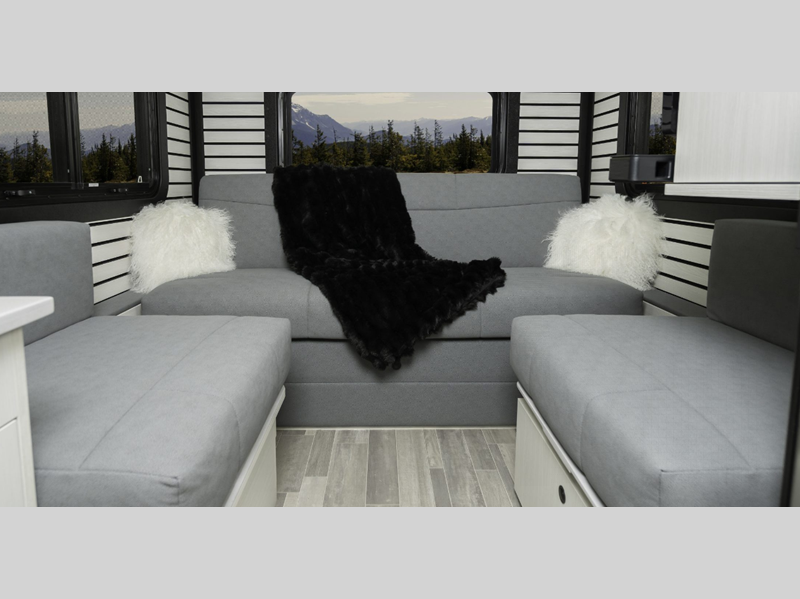 Enjoy flexible living space with a Lagun table that can be mounted in both the front and rear living area. The Sikaflex bonded fiberglass walls, full-body paint, and steel-framed roof, walls and floor are sure to hold up through your greatest adventures for many years. With a Fiamma power awning, you can escape the sun's intense rays while still breathing in some fresh air, plus the LED lighting on it can be controlled by the touchscreen panel.