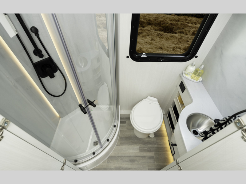 Sleeps 3 Length 22 ft 9 in Ext Width 9 ft 2 in Ext Height 10 ft 9 in Int Height 6 ft 8 in Interior Color Cashmere, Flint Exterior Color High Tech Silver, Grey White GVWR 11030 lbs Cargo Capacity 4220 lbs Fresh Water Capacity 28 gals Grey Water Capacity 20.4 gals Black Water Capacity 17.4 gals Tire Size LT215/85 R16 Furnace BTU 11500 btu Generator 2.5 KW Onan QG 2500i LP Fuel Type Diesel Engine 4-Cylinder OM 654 High Output Chassis Mercedes-Benz Sprinter 3500 Horsepower 211 hp Fuel Capacity 26 gals Wheelbase 170 in Refrigerator Type 12V Norcold Refrigerator Size 5.3 cu ft Cooktop Burners 1 Shower Size 32" Number of Awnings 1 Axle Weight Front 4410 lbs Axle Weight Rear 7720 lbs Water Heater Type Truma AquaGo Comfort Plus AC BTU 13500 btu TV Info LR 24" Smart LED TV Awning Info Fiamma Power w/ LED Lights Gross Combined Weight 15250 lbs Shower Type Radius Electrical Service 30 amp
