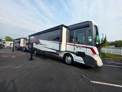 Sleeps 6 Slides 3 Length 39 ft 6 in Ext Width 8 ft 5 in Ext Height 12 ft 10 in Int Height 7 ft Interior Color Desert Retreat, Lunar Lite Exterior Color Scarlet Thunder, Nasa, Frosted Granite, Euro Blue Hitch Weight 5000 lbs GVWR 29800 lbs Fresh Water Capacity 70 gals Grey Water Capacity 65 gals Black Water Capacity 65 gals Tire Size 255/80R 22.5 Furnace BTU 65000 btu Generator 8.0 kW Cummins Onan Diesel Quiet Series Fuel Type Diesel Engine Cummins B6.7 Chassis Freightliner XCS Straight Rail Rear Engine Diesel Horsepower 340 hp Fuel Capacity 90 gals Wheelbase 252 in Number Of Bunks 2 Available Beds King Torque 700 ft-lb Refrigerator Type Stainless Steel Residential with Bottom Freezer Refrigerator Size 18 cu ft Convection Cooking Yes Cooktop Burners 3 Shower Size 34.5" x 34.5" Number of Awnings 1 Axle Weight Front 10800 lbs Axle Weight Rear 19000 lbs LP Tank Capacity 20.3 gals. Water Heater Type Truma AquaGo Comfort Instant AC BTU 30000 btu Basement Storage 118 cu. ft. TV Info LR TV, BR TV Awning Info Side-Mounted Power w/Integrated LED Lighting Washer/Dryer Available Yes Gross Combined Weight 33000 lbs Shower Type Radius Electrical Service 50 amp Similar Motor Home Class A - Diesel Floorplans