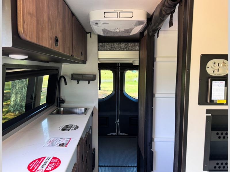 Sleeps 2 Length 22 ft 11 in Ext Width 7 ft 8 in Ext Height 10 ft Int Height 6 ft 3 in Interior Color Stargazzer Exterior Color Blue Grey, Selenite Grey, Pebble Grey/Tan, Arctic White Hitch Weight 5000 lbs GVWR 9050 lbs Fresh Water Capacity 26 gals Grey Water Capacity 33 gals Black Water Capacity 4.5 gals Tire Size LT 245/70R 17 Fuel Type Diesel Engine Mercedes-Benz 2.0L 4 Cylinder Twin Scroll Turbo Chassis Mercedes Benz Sprinter 2500 AWD Horsepower 208 hp Fuel Capacity 24.5 gals Torque 332 ft-lb Refrigerator Type 12V Refrigerator with Freezer Refrigerator Size 3.1 cu ft Cooktop Burners 1 Number of Awnings 1 Water Heater Type Bypass AC BTU 15000 btu Awning Info Girard Side-mounted Powered Patio Gross Combined Weight 13930 lbs Shower Type Wet/Bath Shower Electrical Service 30 amp