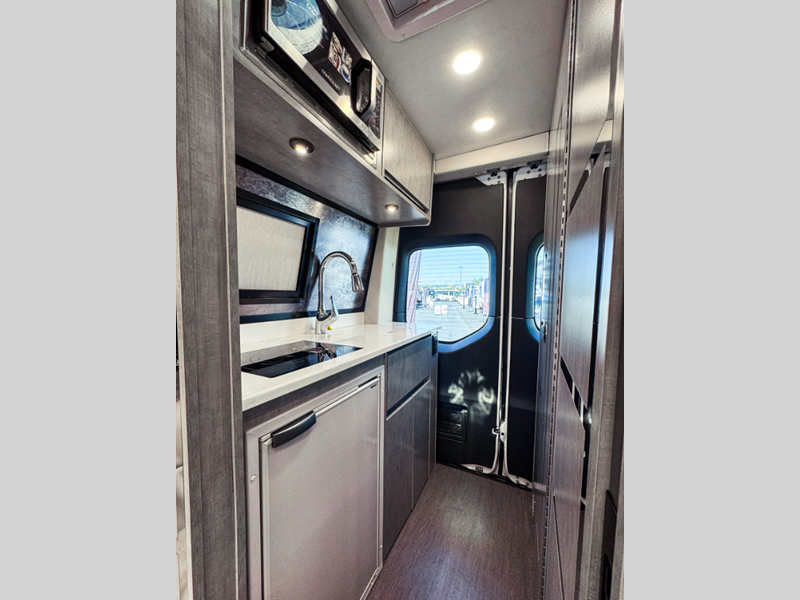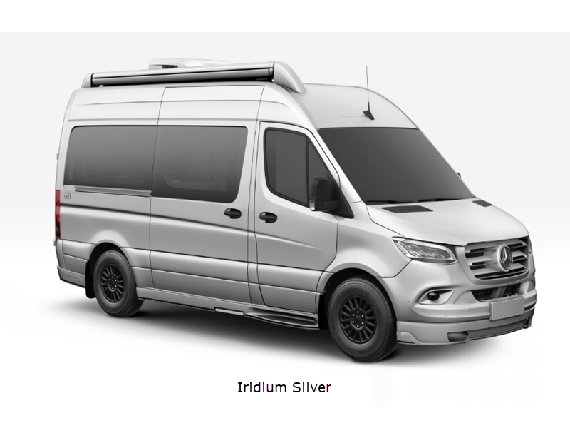 Sleeps 2 Length 24 ft 3 in Ext Width 7 ft 8 in Ext Height 10 ft Int Height 6 ft 3 in Interior Color Arctic White, Iridium Silver, Obsidian Black Exterior Color Terrain, Carbon Hitch Weight 5000 lbs GVWR 11030 lbs Fresh Water Capacity 33 gals Grey Water Capacity 24 gals Black Water Capacity 10 gals Tire Size LT215/85R 16 Fuel Type Diesel Engine Mercedes-Benz 2.0L 4 Cylinder Twin Scroll Turbo Chassis Mercedes Benz 3500 Sprinter Horsepower 208 hp Fuel Capacity 24.5 gals Wheelbase 170 in Torque 332 ft-lb Refrigerator Type 12V Refrigerator Size 3.1 cu ft Cooktop Burners 1 Number of Awnings 1 Water Heater Type Bypass AC BTU 15000 btu TV Info Cab 32" TV Awning Info Girard Side-mounted Powered Patio Gross Combined Weight 15250 lbs Shower Type Wet/Bath Shower Electrical Service 30 amp
