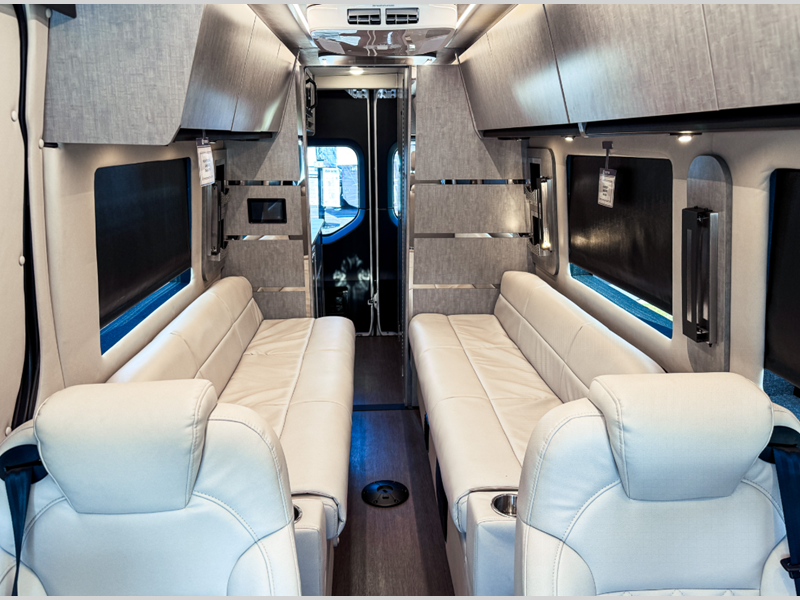 Built on the formidable Mercedes-Benz® 3500 Sprinter cargo van chassis, this motorhome embodies innovation, power, and cutting-edge technology. Powering the GT2 is the impressive Mercedes-Benz 2.0L 4 cylinder twin scroll turbo 208HP diesel engine, delivering 332 lb-ft of torque. Additionally, these motorhomes feature tire pressure monitoring, allowing for worry-free exploration outside. The interior features high-pressure laminate cabinetry that exudes elegance and durability, solid countertops, and linoleum flooring, adding convenience and style to this easy-to-maintain mobile haven.