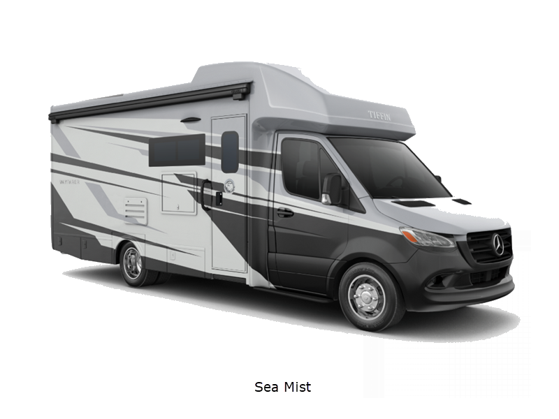 Sleeps 5 Slides 1 Length 25 ft 8 in Ext Width 7 ft 6 in Ext Height 11 ft 4 in Int Height 7 ft 2 in Interior Color Sedona, Grandview Exterior Color Coastal Blue, Silver Sand, Sea Mist Gen 7 Paint Schemes Hitch Weight 5000 lbs GVWR 11030 lbs Fresh Water Capacity 32 gals Grey Water Capacity 30 gals Black Water Capacity 26 gals Tire Size LT215/85R16 Furnace BTU 30000 btu Generator 4-Kilowatt RVMP Flex Power LP Fuel Type Diesel Engine 2.0L V4 Turbo Diesel Chassis Mercedes-Benz Dual Wheel Cutaway 3500XD Horsepower 208 hp Fuel Capacity 24.5 gals Wheelbase 170.3 in Number Of Bunks 1 Available Beds Twin Beds with King Conversion Torque 332 ft-lb Refrigerator Type Gas/Electric Refrigerator Size 5 cu ft Convection Cooking Yes Cooktop Burners 2 Shower Size 24" x 32" Number of Awnings 1 Axle Weight Front 4410 lbs Axle Weight Rear 7720 lbs LP Tank Capacity 12 gals AC BTU 15000 btu Basement Storage 93 cu. ft. TV Info LR TV Awning Info Girard Side-Mounted Power w/LED Lighting and Speakers Gross Combined Weight 15250 lbs Shower Type Standard Electrical Service 30 amp Similar Floorplans