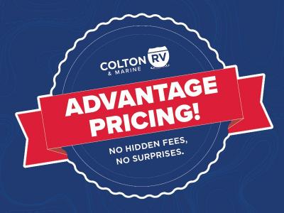 Colton Advantage Pricing: Pre Delivery Inspection, Orientation, Full Propane, 1/2 Tank of Fuel, RV and Boat Cleaning, Battery. Exclusions may apply.